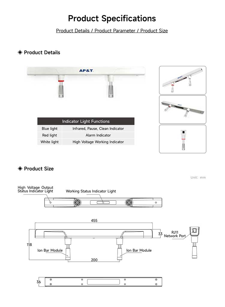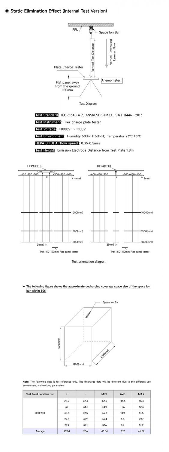 - Unique discharge structure design(equipped with special Si electrodes, suitable for eliminating static electricity and charged particulate pollutants in space)