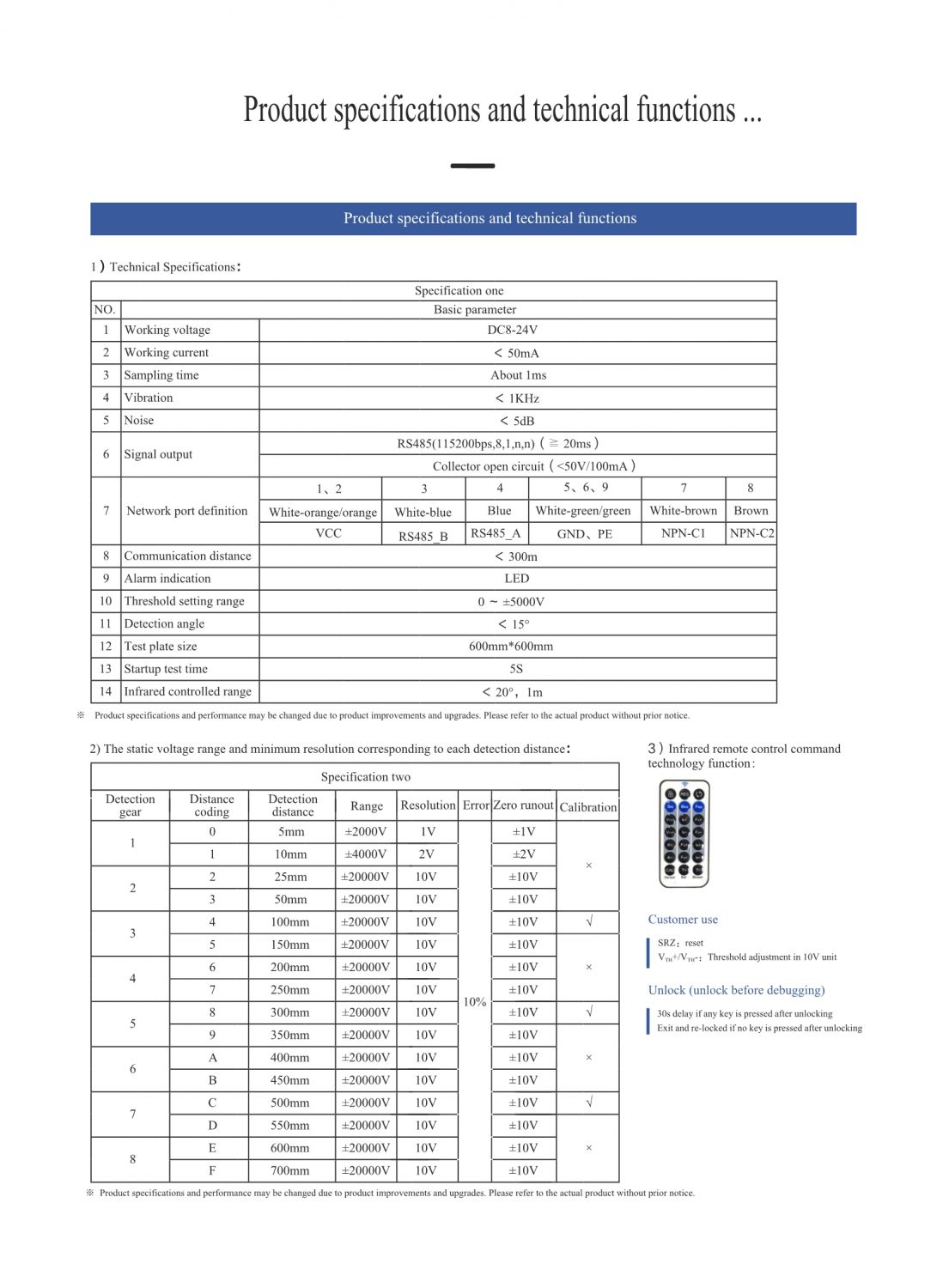 10 Threshold setting range 0 ~ ±5000V