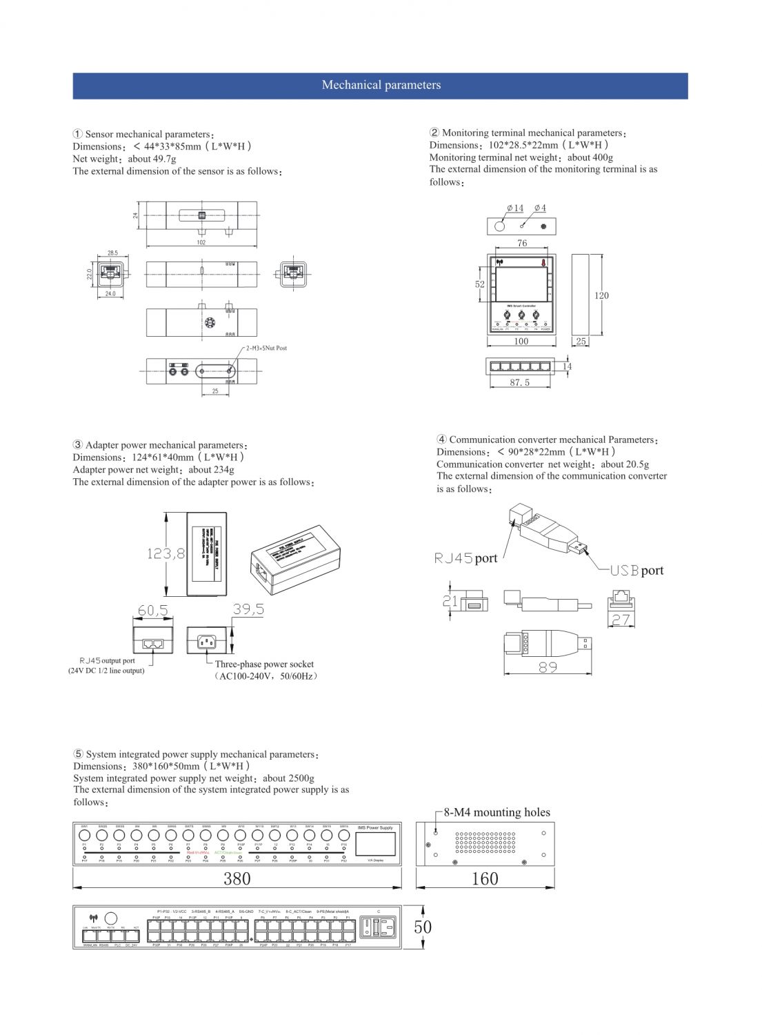 1)Technical Specifications: